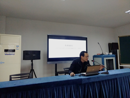 首先是语文教研组长张维伦老师汇报。张老师借用朱熹的诗《春日》形容当前的语文组,同时用“这一年,蓦然回首,我们发现…”回顾了这一整年语文组的收获:语文组被评为市先进教研组;张寰宇老师评上特级教师;组员的课从学校走向县市区甚至全国;编写初中课外阅读本;校博雅文化节的诗词朗诵…张老师充满诗意又不乏幽默的发言赢得了大家阵阵掌声。