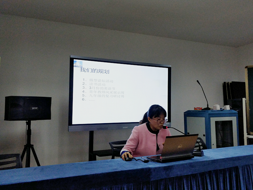 然后英语教研组长林晓云老师从常规性教研和主体化教研两个方面对英语组这一年的工作做了总结。英语组活动丰富且有特色,新常规主题讲座、微型论坛会议等,给每个老师锻炼自己的机会,做到人人开课、人人命题议题。此外,英语组老师在繁忙的工作之余,通过不断阅读和研讨来提升自己,开出了市级公开课、市级讲座、发表省级论文…