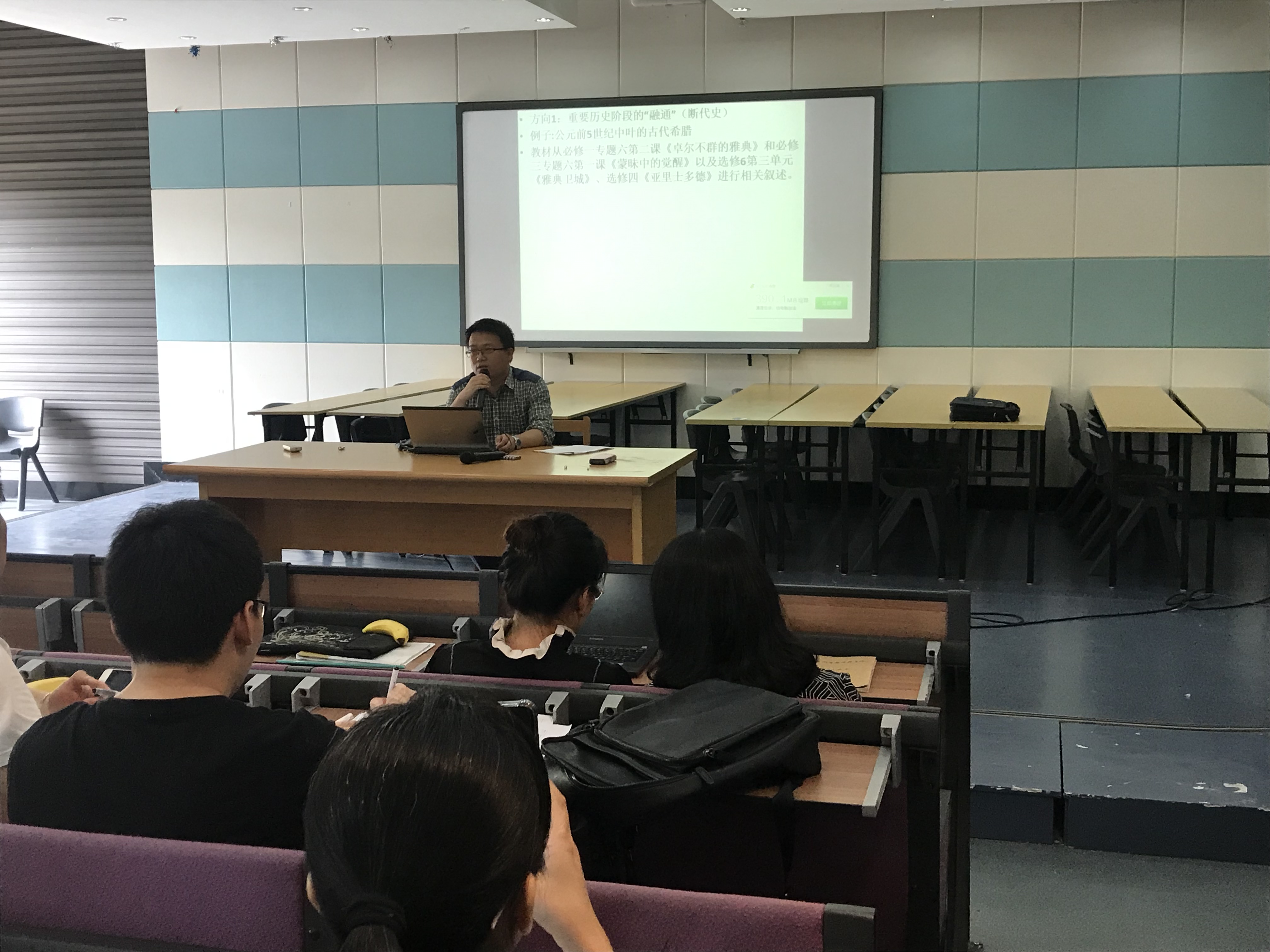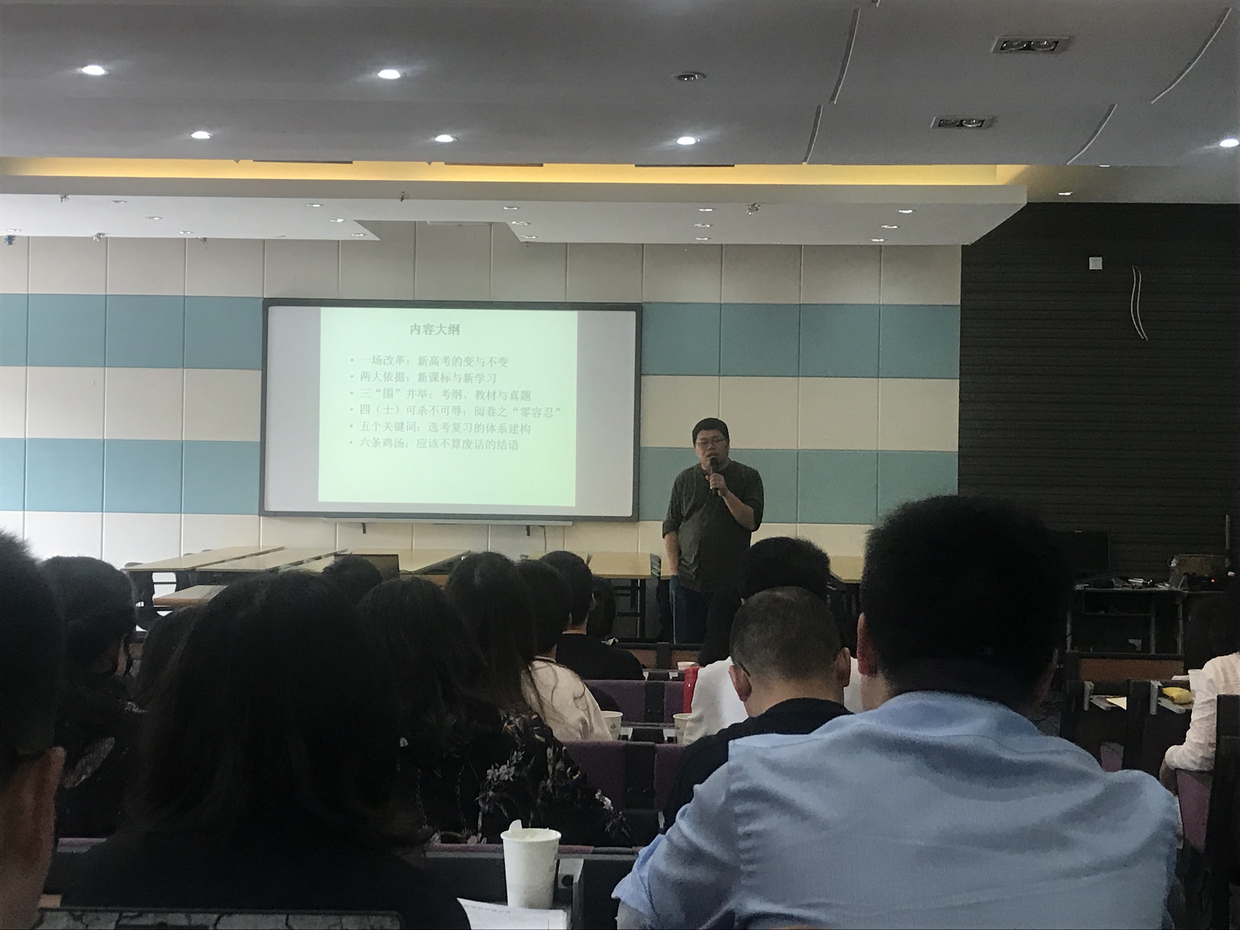 本次活动的压轴戏是杭师大周东华教授的讲座《历史选考复习策略与答题规范》,周教授的讲座语言幽默生动,内容丰富,既高屋建瓴,又通俗易懂。他从一场改革——新高考的变与不变入题,以考纲、教材、真题“三围”并举,深入浅出地对高中历史教学以及备考方法进行透彻的分析并提出了宝贵建议。周教授的讲座既充满现实关怀,又不失历史情怀,给了我们很多教学启发以及沉甸甸的历史责任感。