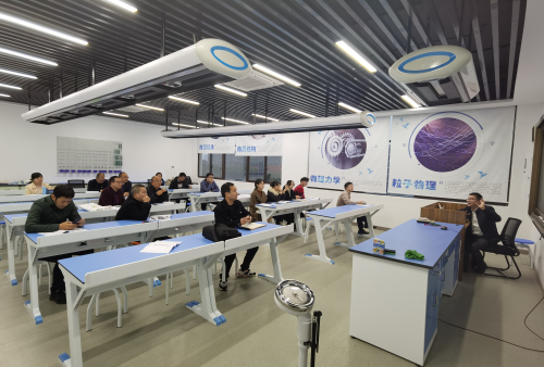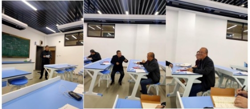 课后,在龙港中学蔡启跳老师的主持下,两位开课教师分别讲述了自己的课堂设计思路,两所学校的骨干教师就课堂内容进行评课和议课,并展开物理教学中关键问题的讨论。我校陈建钦老师、龙港中学杨宗跳老师从课堂框架构建、实验道具准备、学生探究环节上肯定了两位老师的精彩表现,并基于新课标、新教材提出了关于如何更好落实基于UbD理念促进深度学习的建议。