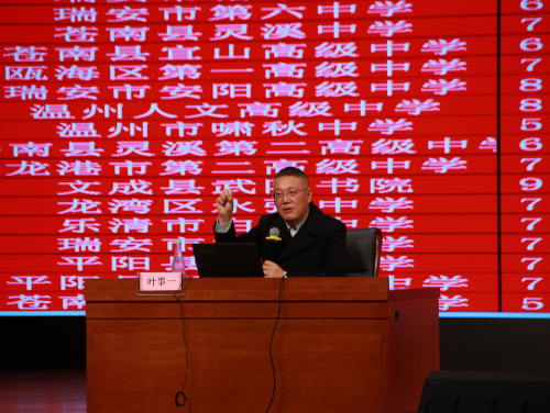 精准分析,聚力高效。最后,由温州市教研院教研员叶事一老师带来《2023届二模数据分析》的总结发言。叶事一老师从多角度、多层次为各学校进行二模数据分析与解读,指出其中的注意点与薄弱环节,并提供“回归教材”、“通性通法”、“优先主干”、“落实应试”四条建设性建议,为高考复习指明方向。