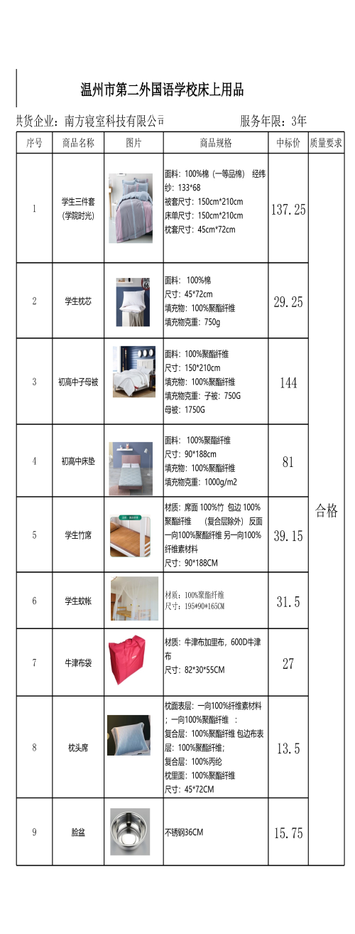 2025年温州市第二外国语学校校服及床上用品中标结果公示